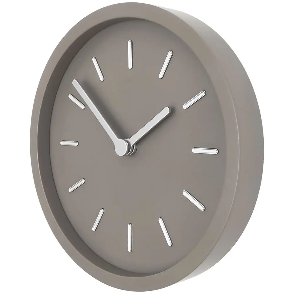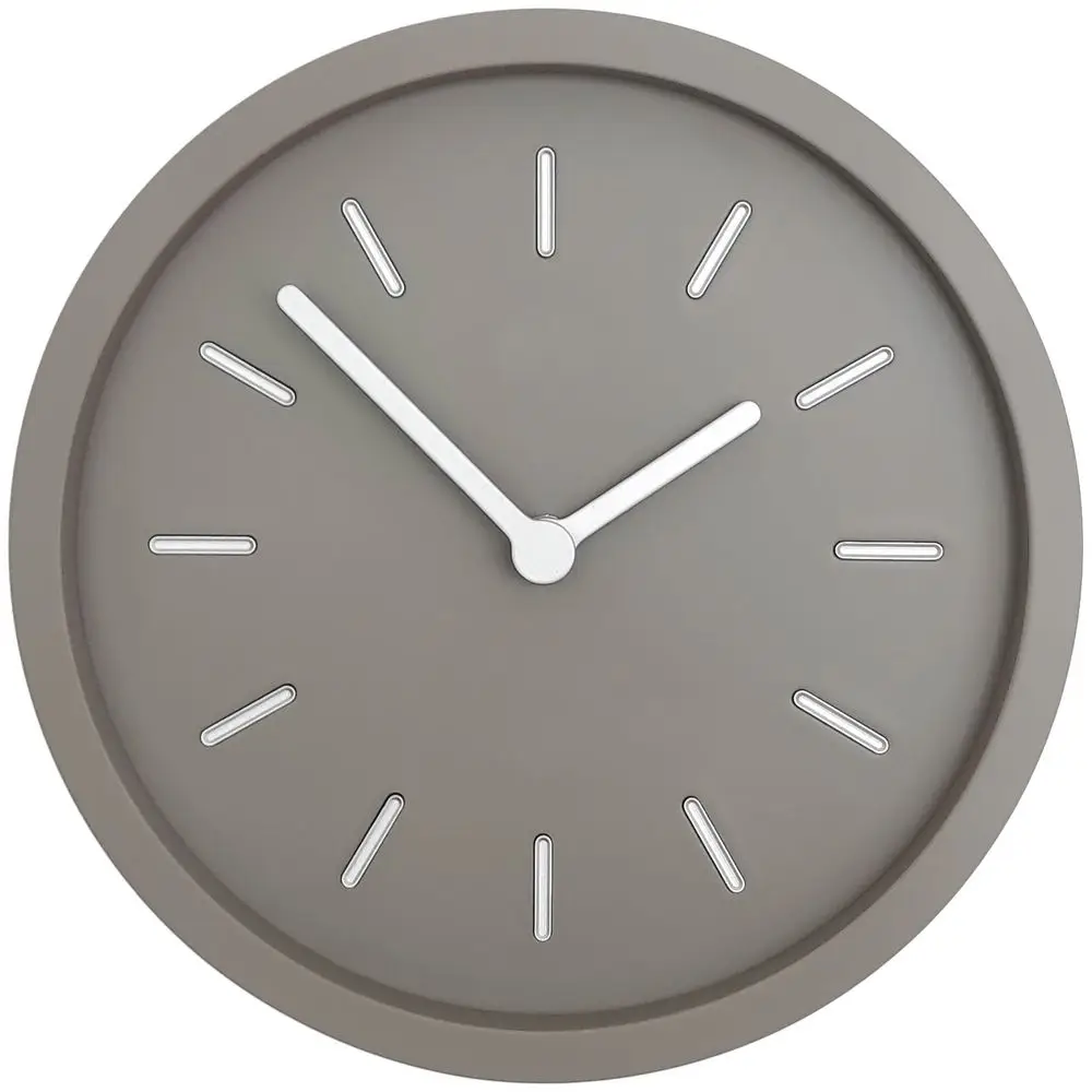 Актуальный тауповый цвет модели настенных часов Sophie придает им тепла и мягкости, а в сочетании с приглушенным оттенком серебристых декоративных элементов — часовых меток и стрелок, часы приобретают благородную сдержанность.