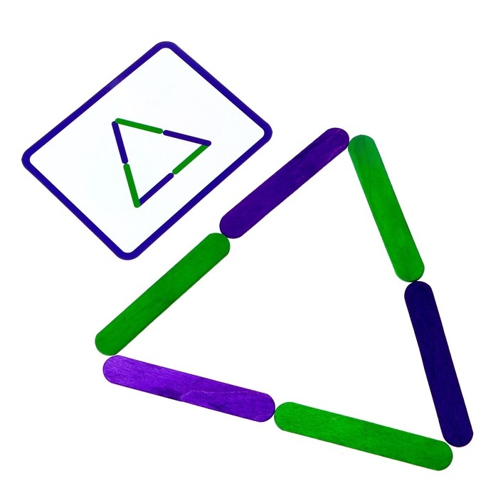 - Собирайте вместе с крохой геометрические фигуры по образцу из палочек.