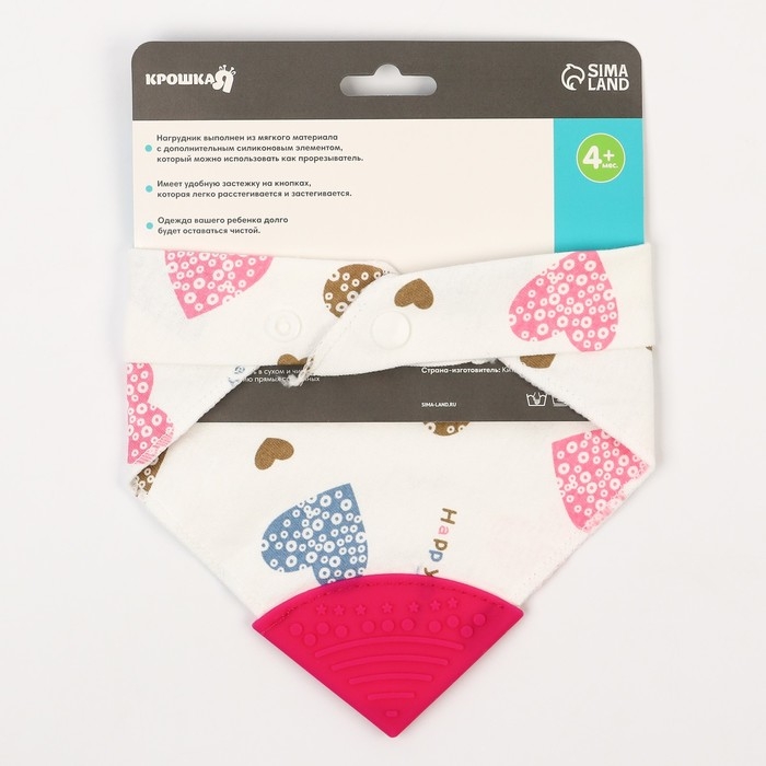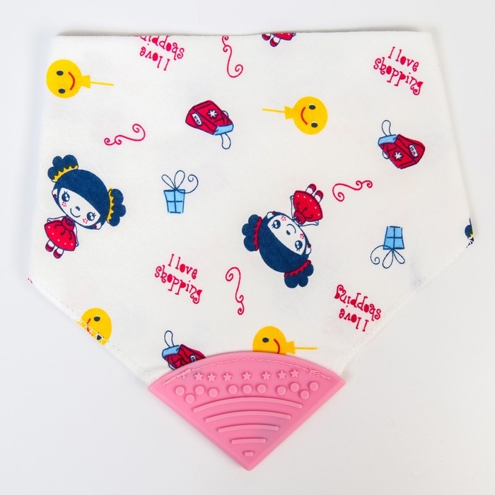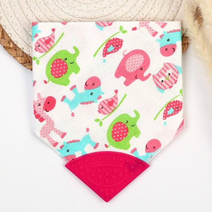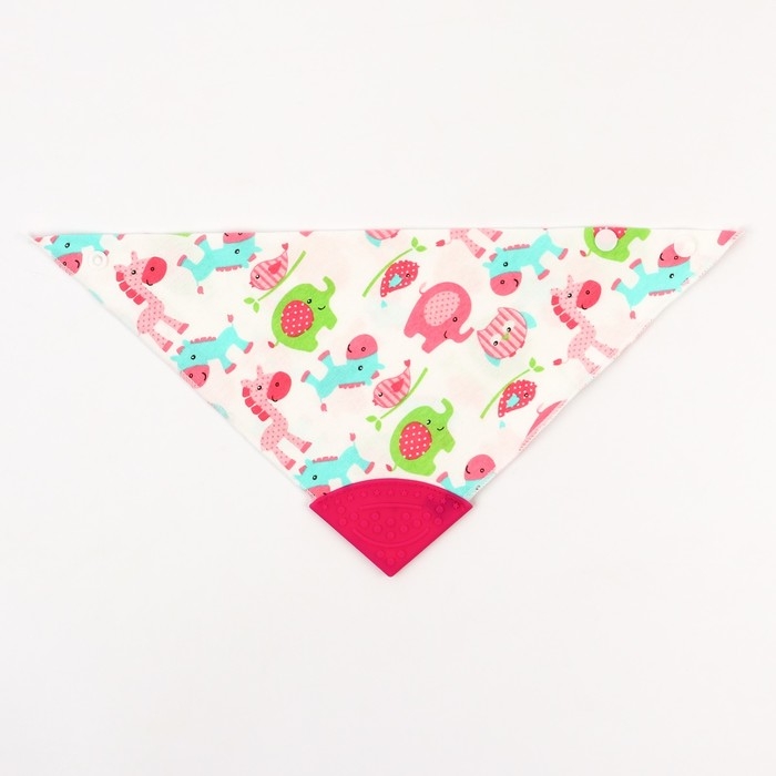 Нагрудник-бандана/слюнявчик для кормления непромокаемый с прорезывателем на кнопке, цвет розовый, МИКС