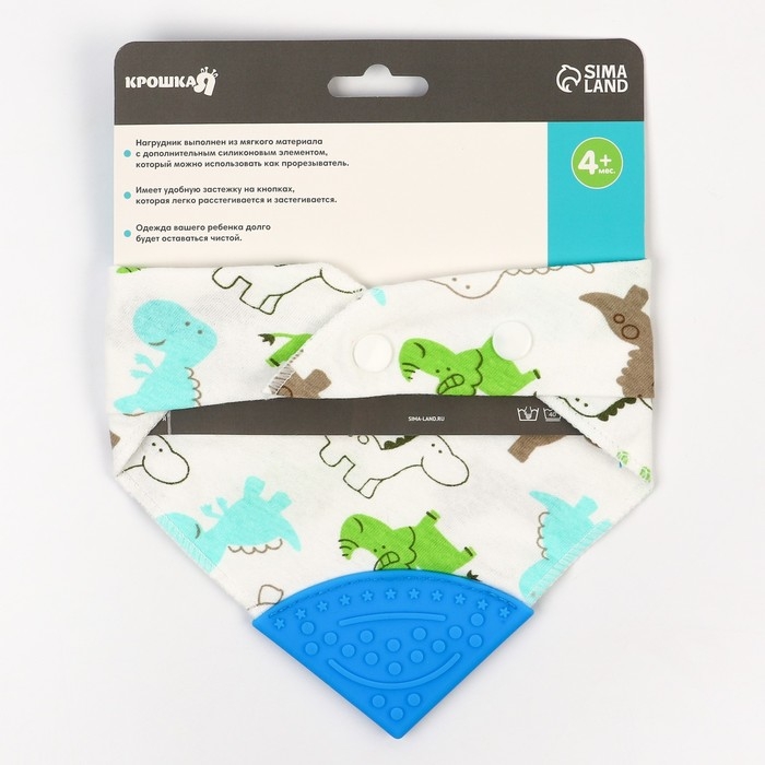 Непромокаемый нагрудник подходит для крошек, которые учатся кушать самостоятельно. Одежда останется сухой и чистой, а сам малыш сохранит опрятный и аккуратный вид после приёма пищи. Все края изделия обработаны, мягкий материал не натирает и не царапает нежную кожу ребёнка. Товар сертифицирован и безопасен для здоровья. Специальный силиконовый элемент развивает мелкую моторику и помогает при прорезывании первых зубов.