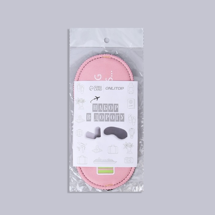 Отличный вариант для поездки - все нужное будет с Вами. Удобный, компактный набор для путешествия. Маска для сна выполнена из приятного на ощупь материала, который будет приятен к коже.