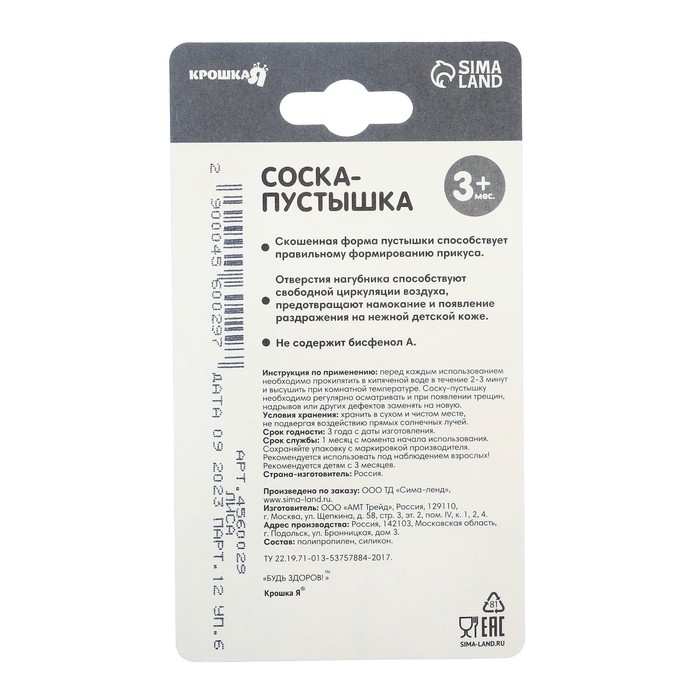 Особенности пустышки: