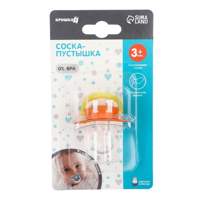 Соска пустышки силиконовая и имеет анатомическую форму диска, специальные вентиляционные отверстия на пустышке улучшают циркуляцию воздуха не раздражают кожу малыша и не оставляют следов и опрелостей. Создана для удовлетворения естественного сосательного рефлекса малышей. Пустышка анатомической формы имеет немного сплюснутый сосок, благодаря чему прилегает к языку.