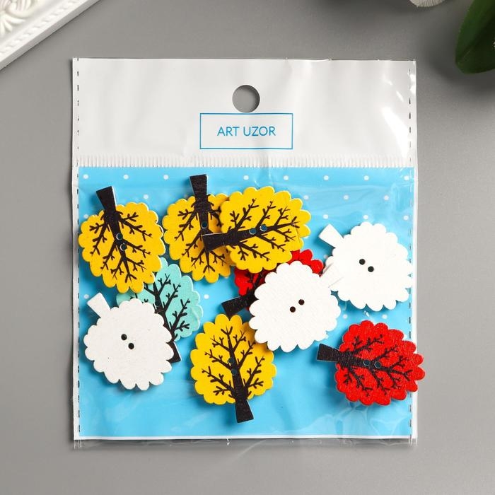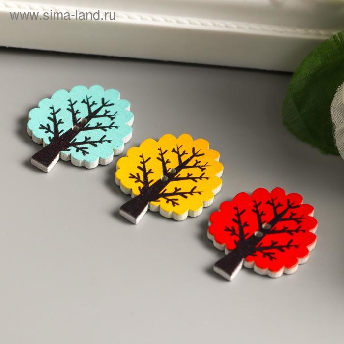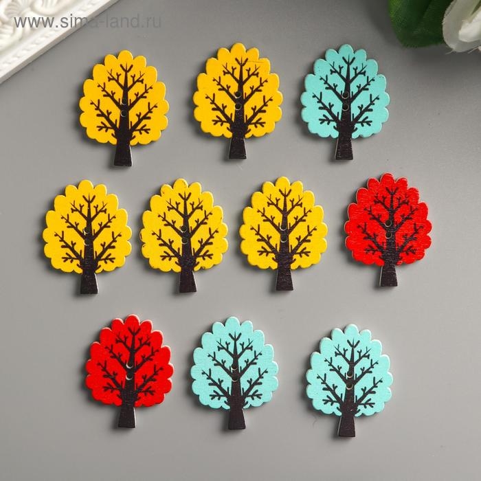 Пуговицы дерево для творчества 2 прокола "Деревце" набор 10 шт 3,1х2,4 см