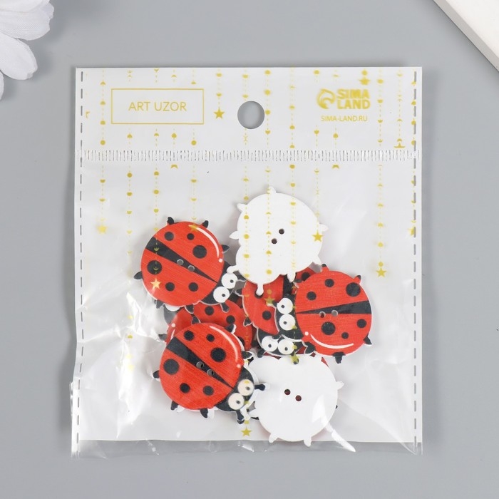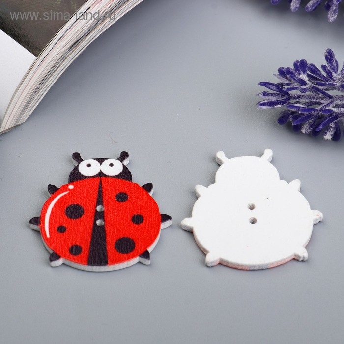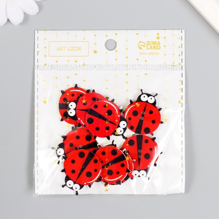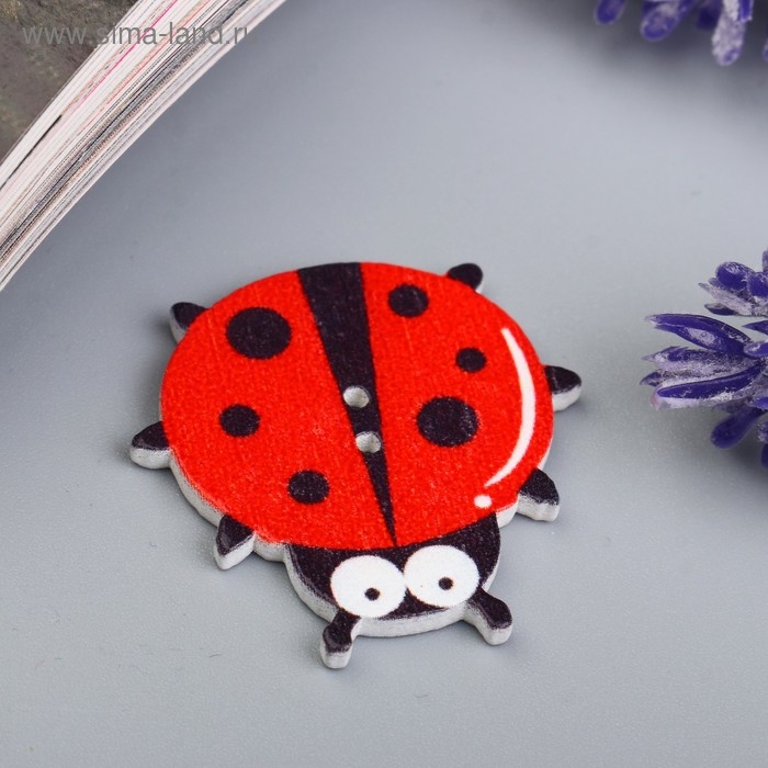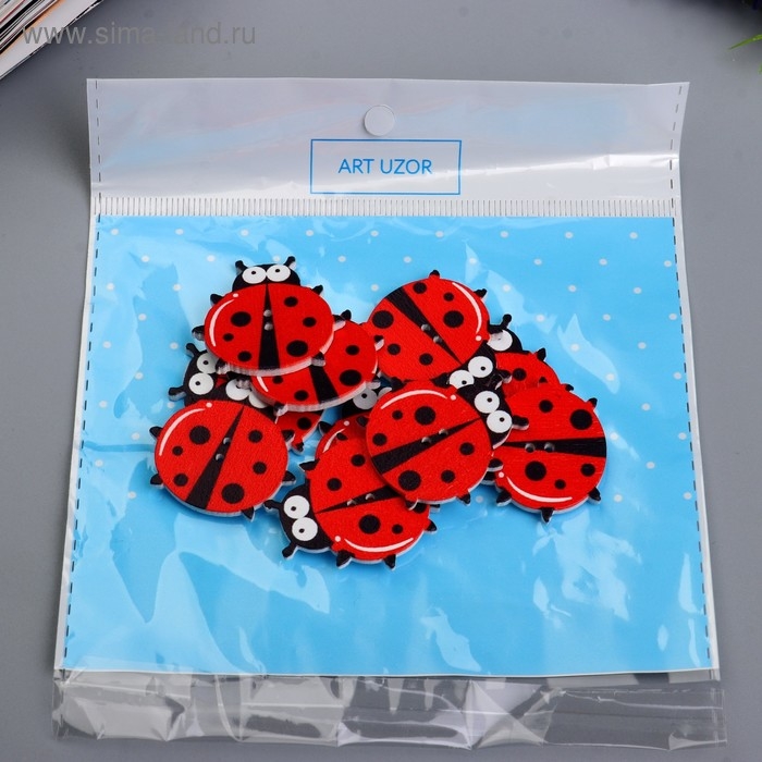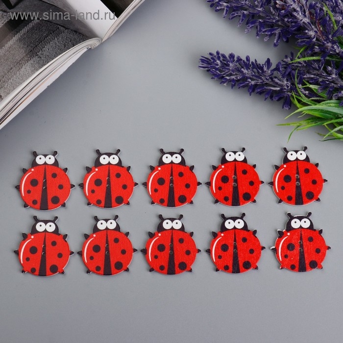 Пуговицы дерево для творчества 2 прокола "Божьи коровки" набор 10 шт 2,7х3 см