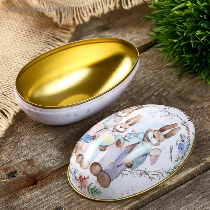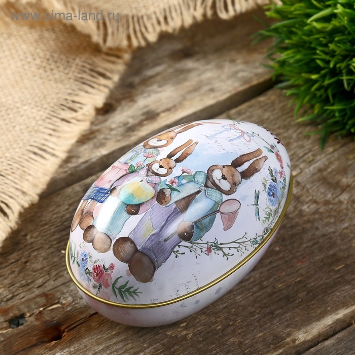 Шкатулка металл яйцо "Семья кроликов" 11х6,5х7 см