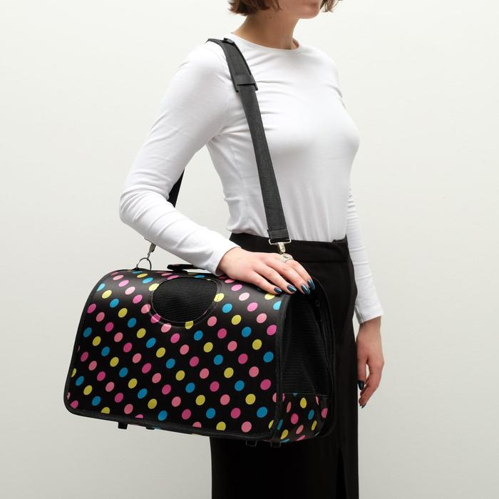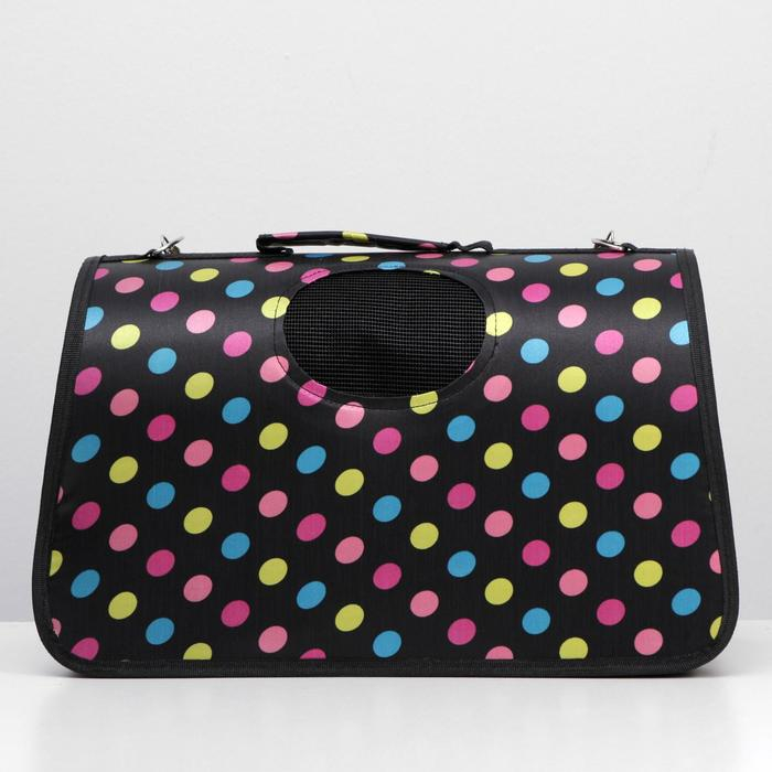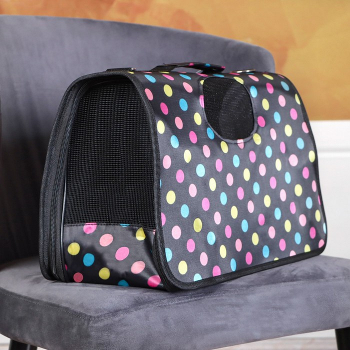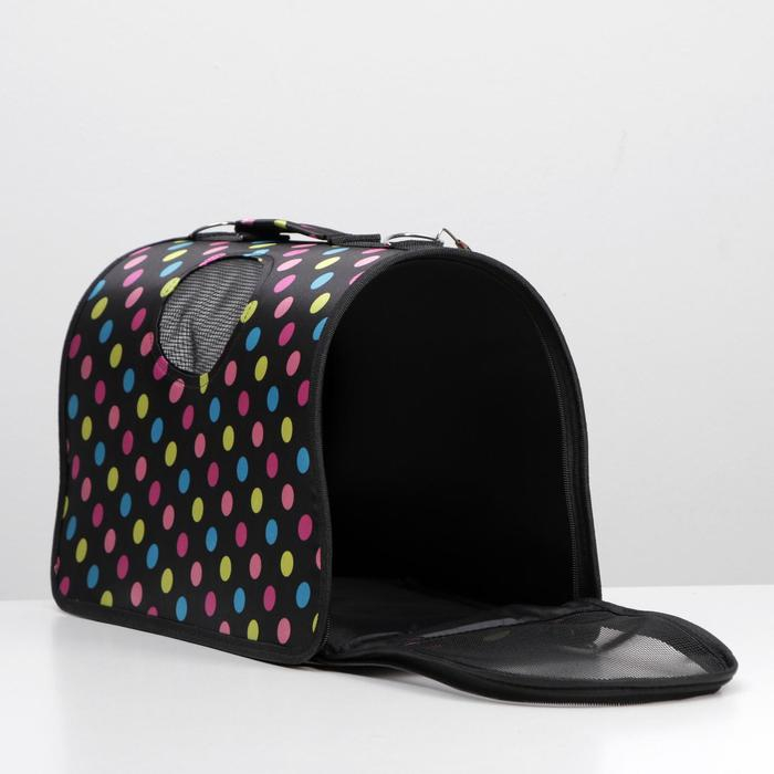 Сумка - переноска для животных "Горошек", чёрная, размер М, 40 х 21 х 27 см