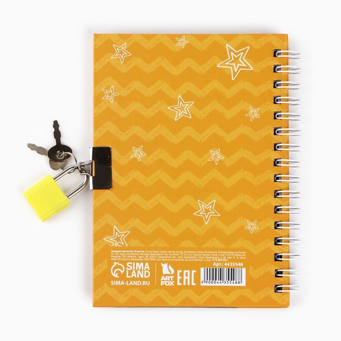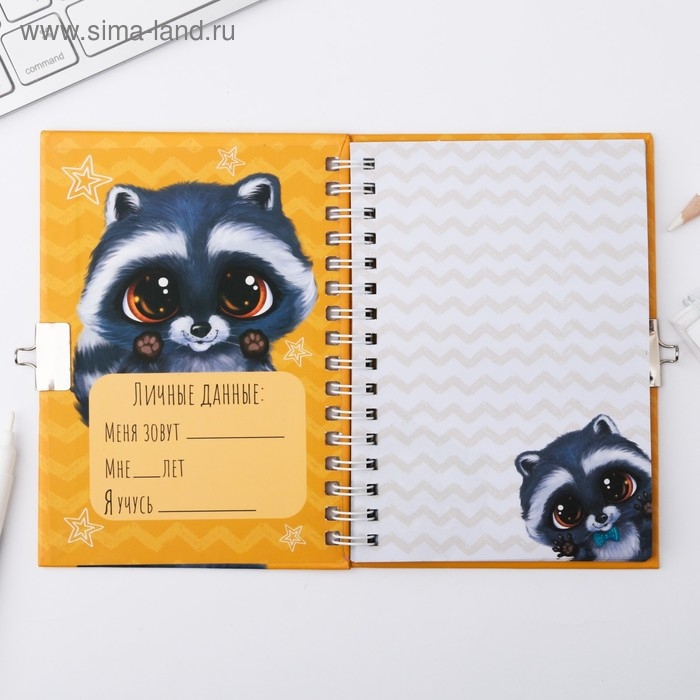 Записная книжка на замочке «Енотик», А6, 50 листов .
