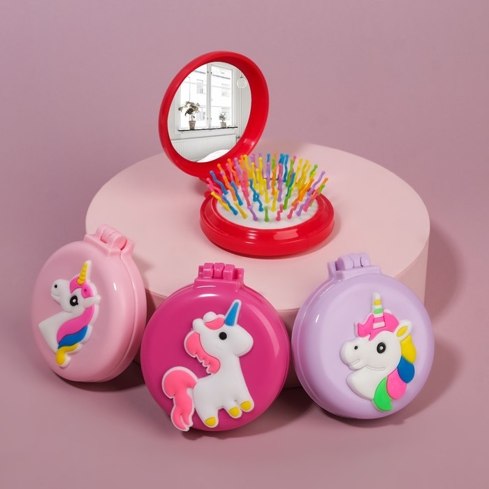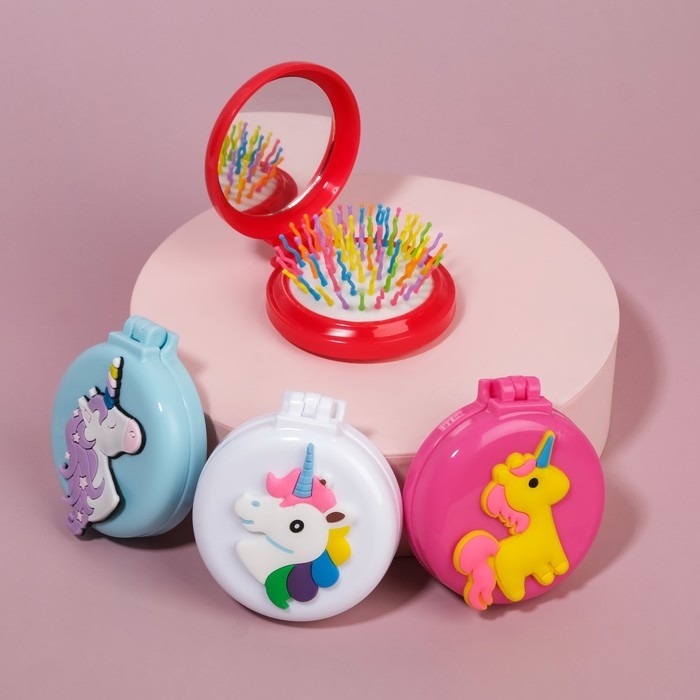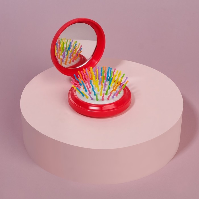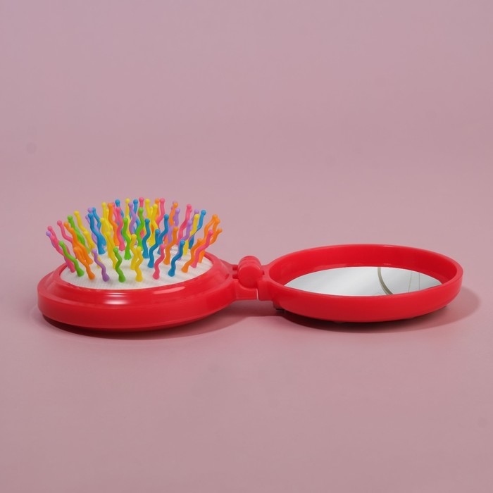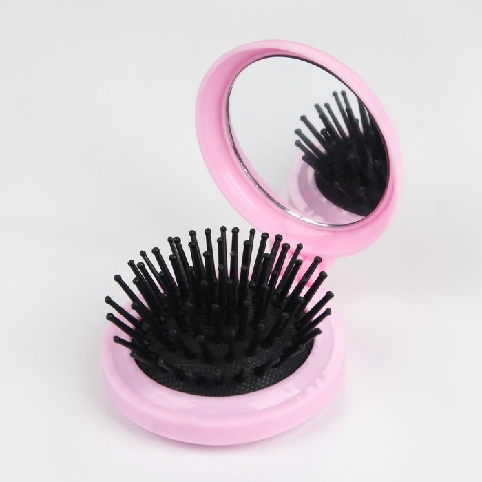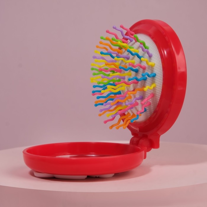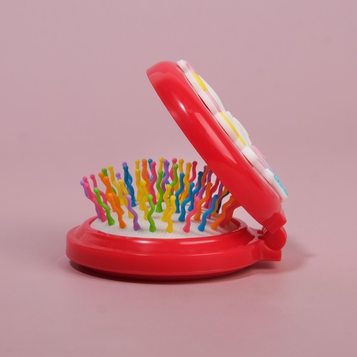 Расчёска массажная, складная, с зеркалом, d = 6,5 см, рисунок МИКС