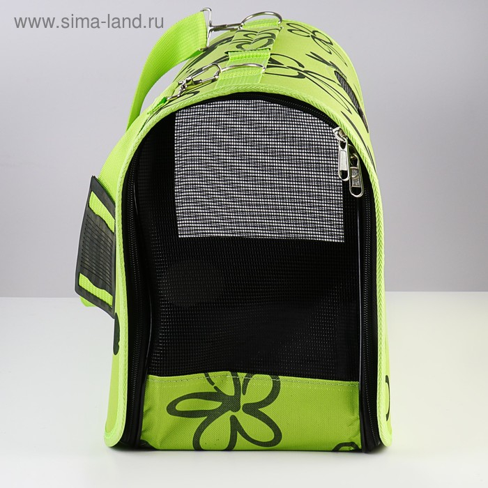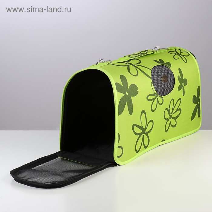 Сумка - переноска для животных "Цветы", зелёная, размер L, 53 х 21 х 29 см