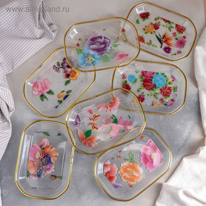 Блюдо прямоугольное «Блеск», 21,7×15,3 см, рисунок МИКС
