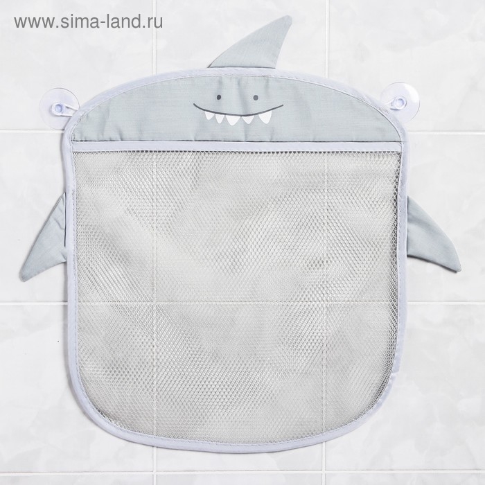 Сетка для хранения игрушек в ванной на присосках «Акула», цвет серый