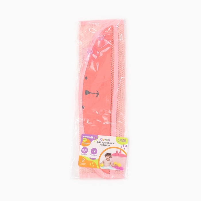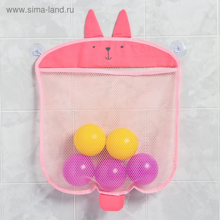 Сетка для хранения игрушек в ванной на присосках «Зайка», цвет розовый