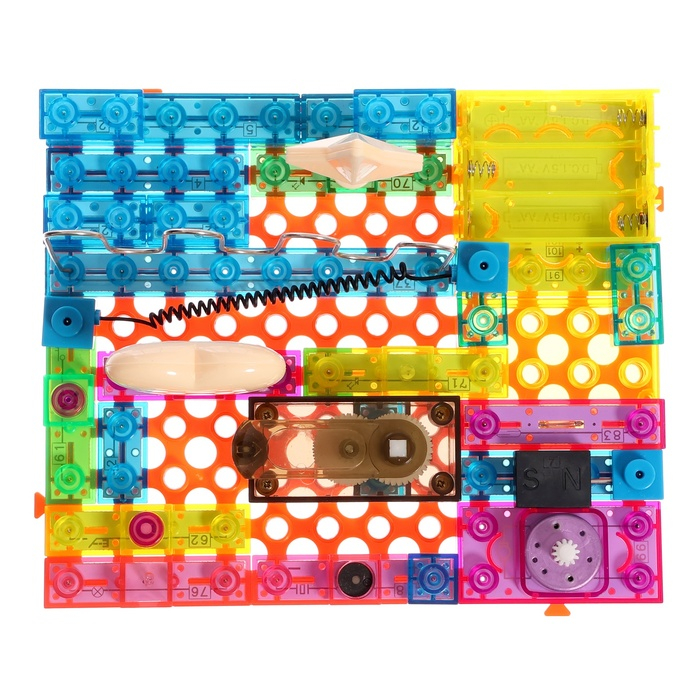 Увлекательный набор познакомит ребёнка с основами физики и электроники. Конструктор имеет множество вариантов сборки, благодаря которым юный инженер узнает о принципах работы электричества и научится самостоятельно собирать простые схемы.