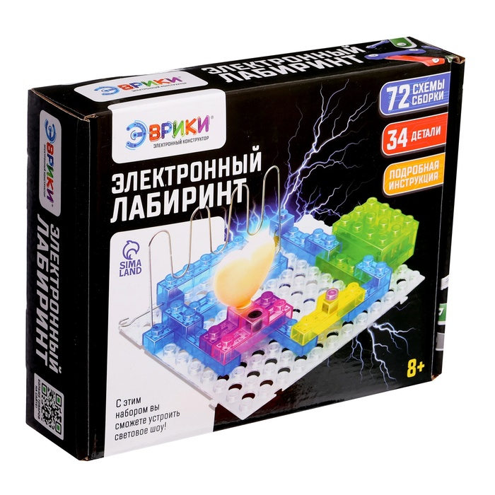 Конструктор блочный-электронный «Электронный лабиринт», 72 схемы, 34 детали