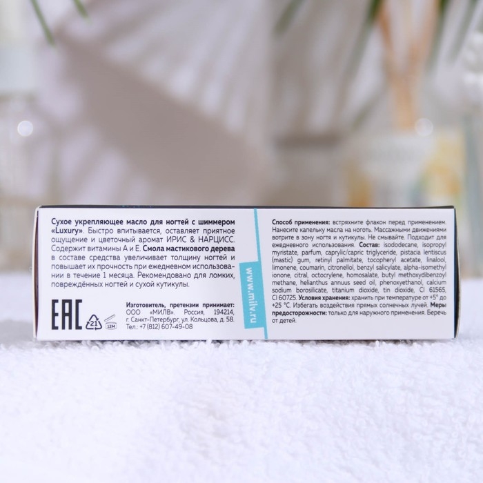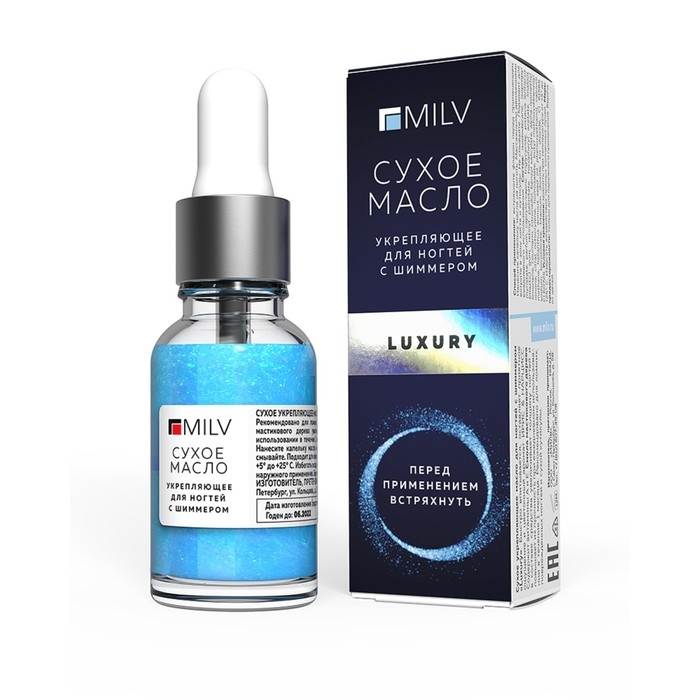 Сухое укрепляющее масло для ногтей Milv Luxury, с шиммером, 15 мл