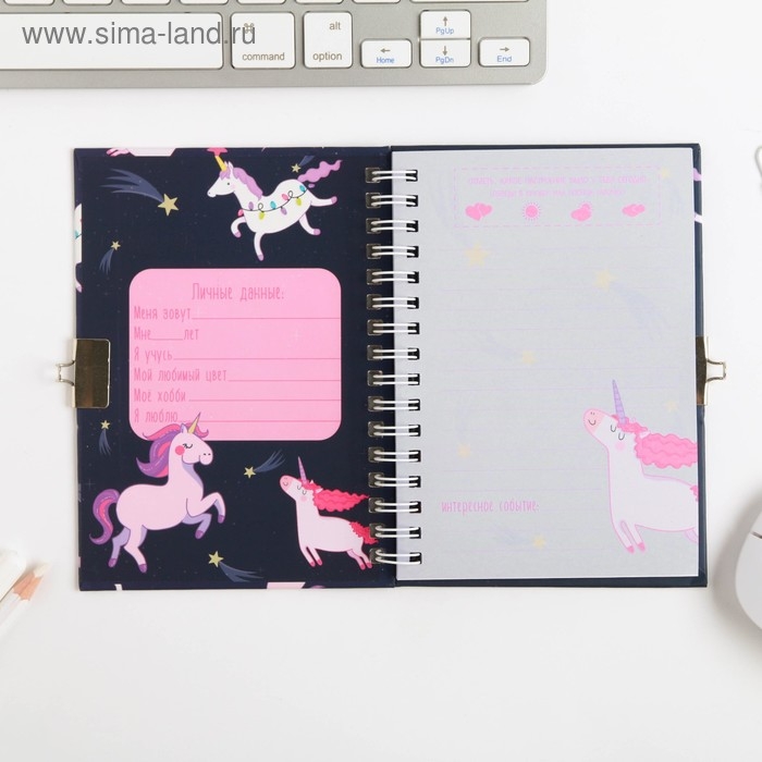 Записная книжка на замочке «Единорожьи секреты», А6, 50 листов.