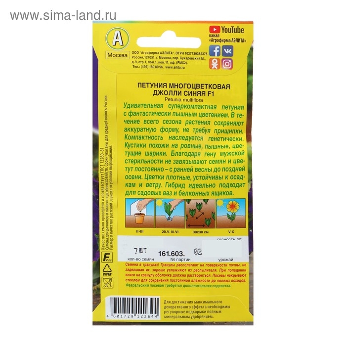 Семена Петуния Джолли синяя F1 многоцветковая, 7 шт