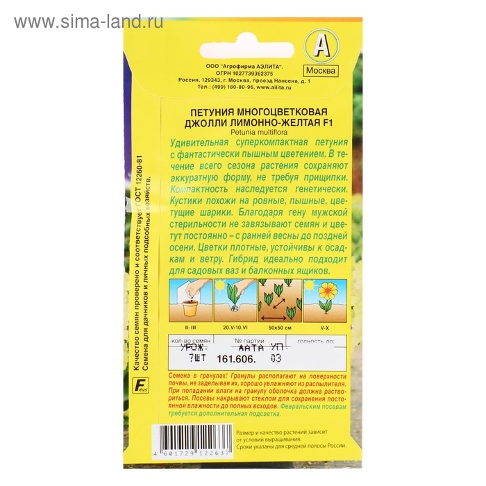 Семена Петуния Джолли лимонно-желтая F1 многоцветковая, 7 шт