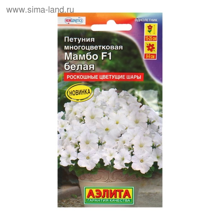 Семена Петуния "Мамбо" F1 белая многоцветковая, 7 шт