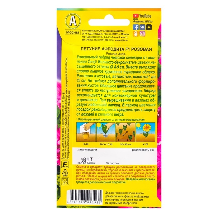 Посев семян на рассаду. Семена в гранулах! Гранулы располагают на поверхности почвы, не заделывая их, хорошо увлажняют из распылителя. При попадании влаги на гранулу оболочка должна раствориться. Посевы накрывают стеклом для сохранения постоянной влажности до полных всходов. Февральским посевам требуется дополнительная подсветка. Сеянцы пикируют в фазе одного-двух настоящих листьев. В фазе пяти-шести листьев проводят формирующую прищипку. Рассаду высаживают в открытый грунт, когда минует угроза заморозков.