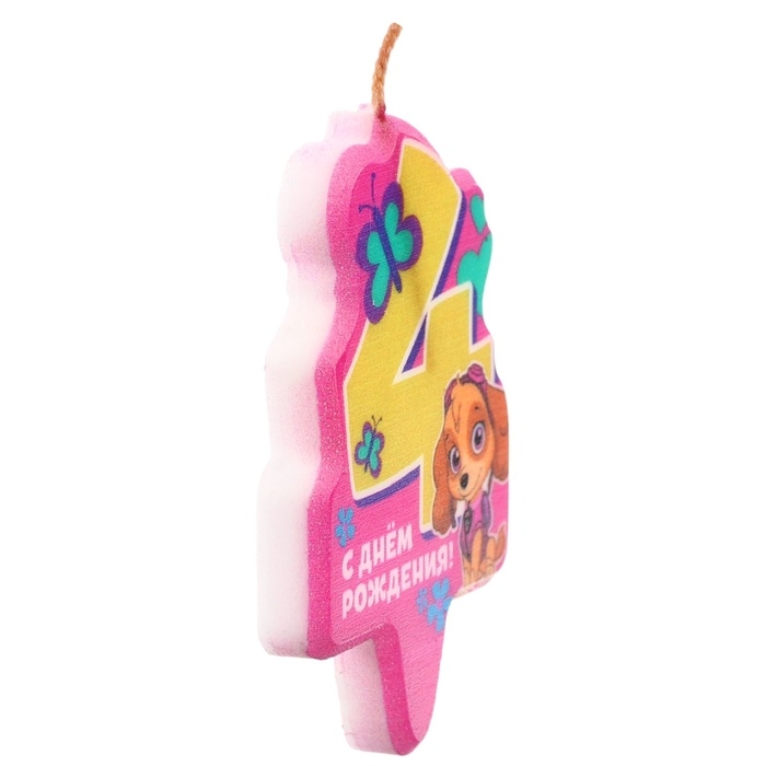 Свеча в торт цифра 4 "С Днем рождения", Щенячий патруль