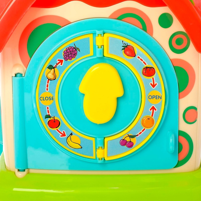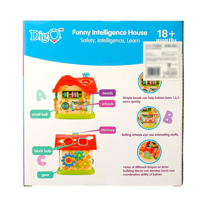 В домике есть отверстия для блоков в форме букв и геометрических фигур. Детали можно нажимать, двигать и крутить.