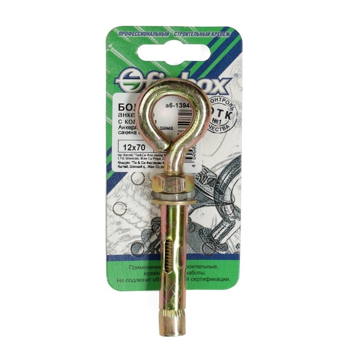 Анкерный болт СТРОЙБАТ, с кольцом, оцинкованный, 12x70 мм