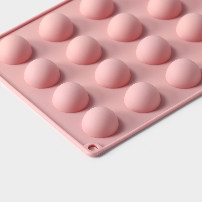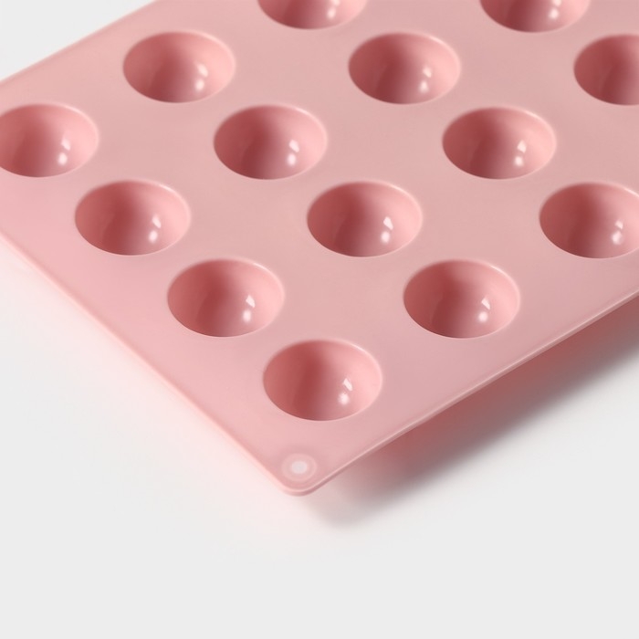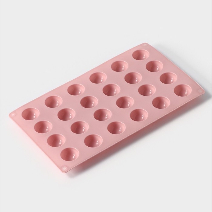 Форма для выпечки Доляна «Фигуры.Полусфера», силикон, 28,3×16,5 см, 24 ячейки (d=2,8 см), цвет розовый