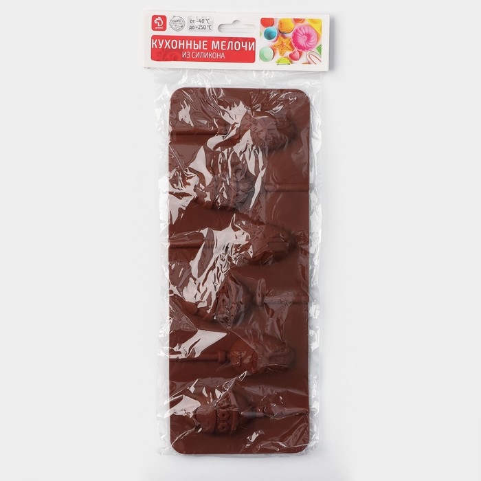 Форма для леденцов Доляна «Детство», силикон, 24×9,5 см, 6 ячеек (5×4,6), с палочками, цвет коричневый