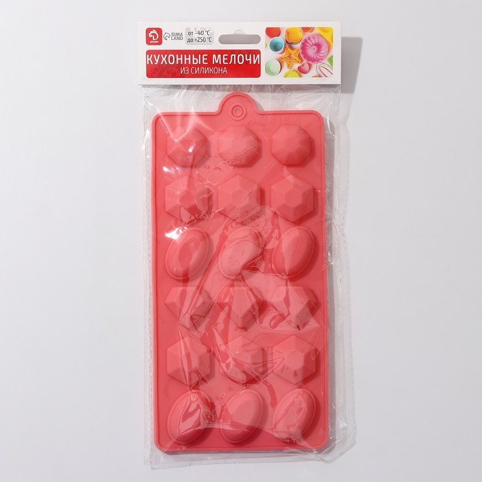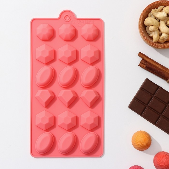 Форма для конфет и шоколада «Самоцветы», 15 ячеек, 20×12×2,5 см, цвет прозрачный