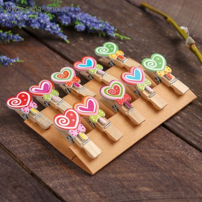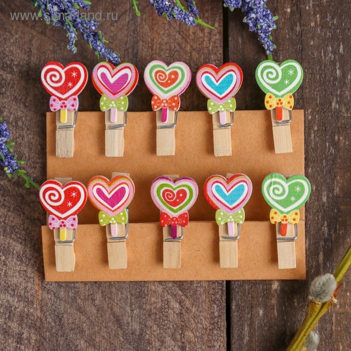 Прищепки декоративные «Узоры в сердечках» набор 10 шт.