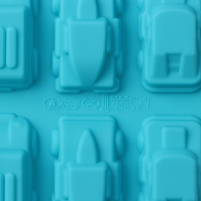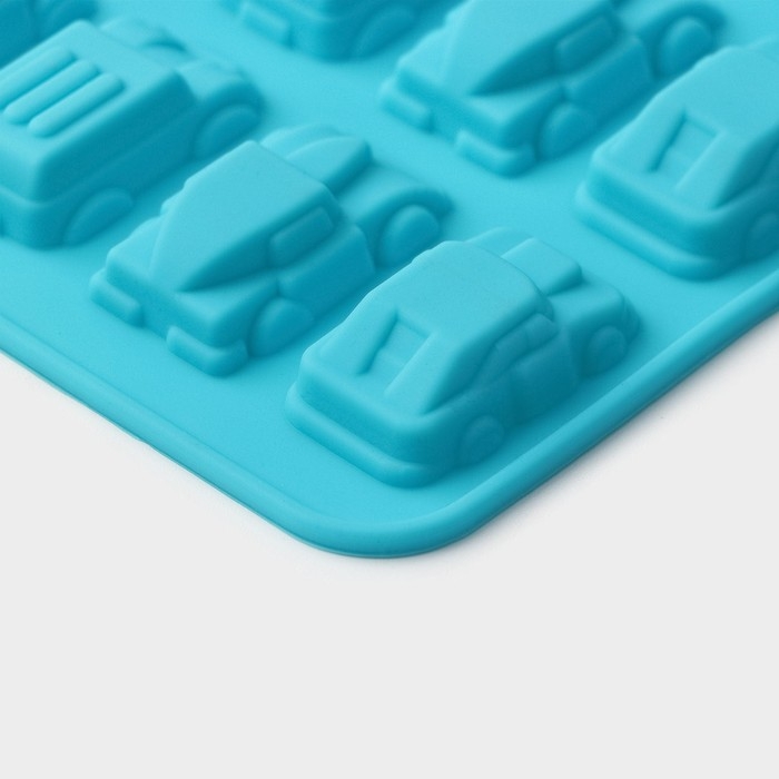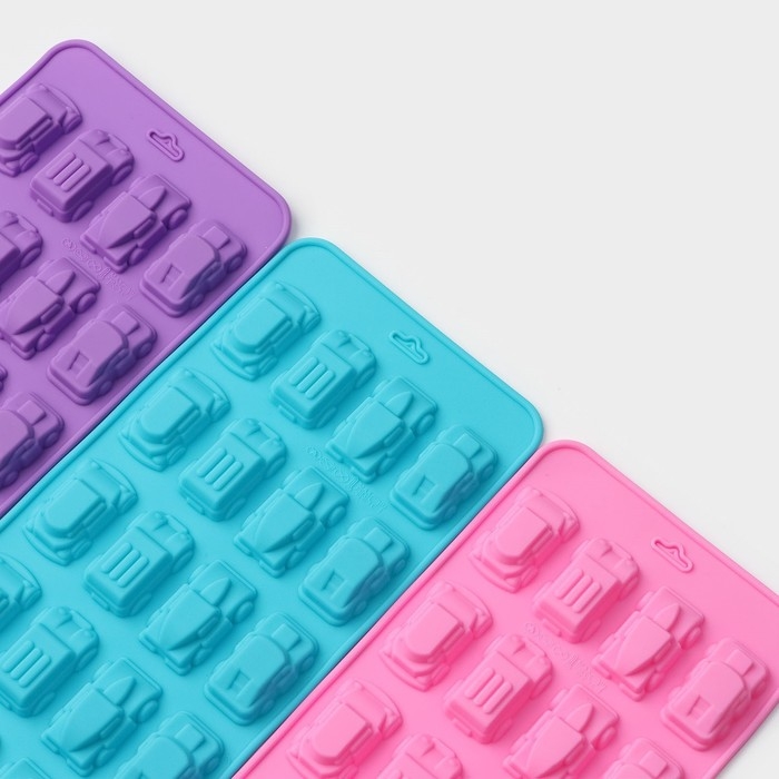 Форма для мармелада Доляна «Автомобили», силикон, 22×10×1,8 см, 20 ячеек (3,2×1,8 см) цвет МИКС