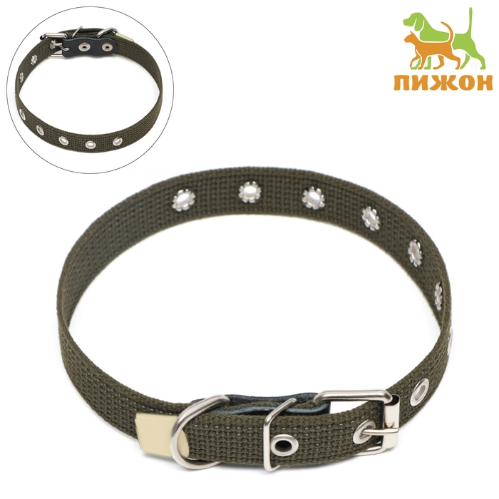 Ошейник брезентовый безразмерный однослойный, 52 х 2 см, ОШ 23-46 см, хаки