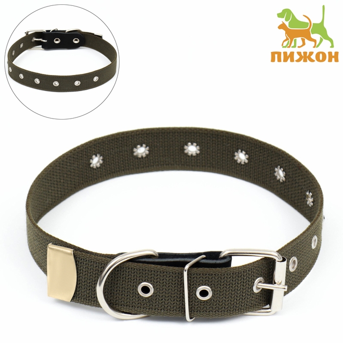 Ошейник брезентовый двухслойный, 72 х 3,5 см, ОШ 45-60 см, хаки