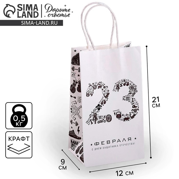 Пакет подарочный крафт, упаковка, «С Днём защитника Отечества», 21 х 12 х 9 см