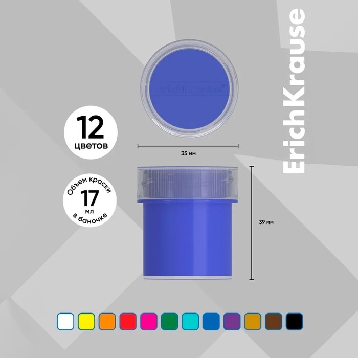 Гуашь 12 цветов х 17 мл, ErichKrause, в картонной упаковке