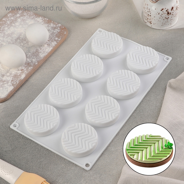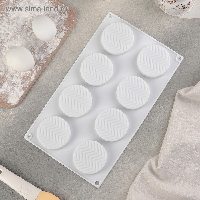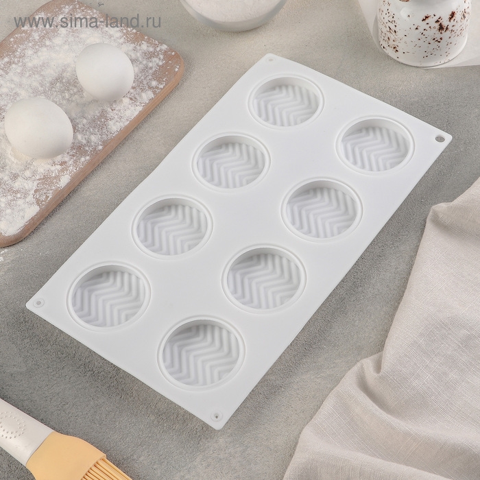 Форма для муссовых десертов и выпечки Доляна «Твид», силикон, 29,5×17×1,4 см, 8 ячеек (d=6 см), цвет белый
