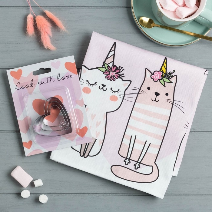 Набор "Love forever" полотенце 40х73см, саржа 190гр/м2, формочки для печенья