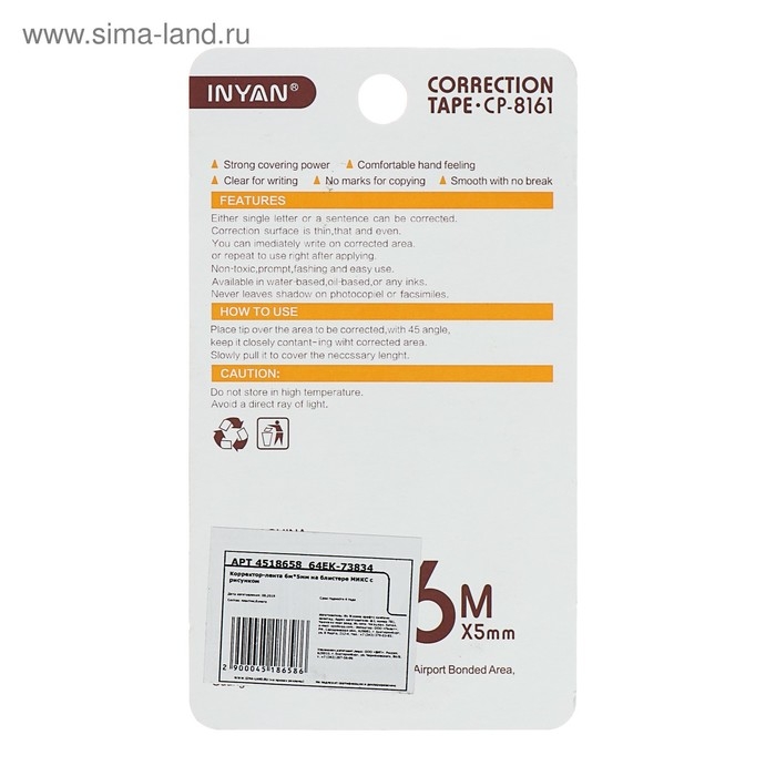Корректор-лента 6 м х 5 мм, с рисунком, на блистере, МИКС