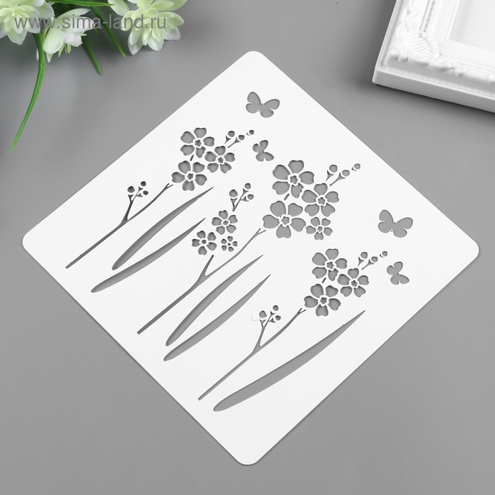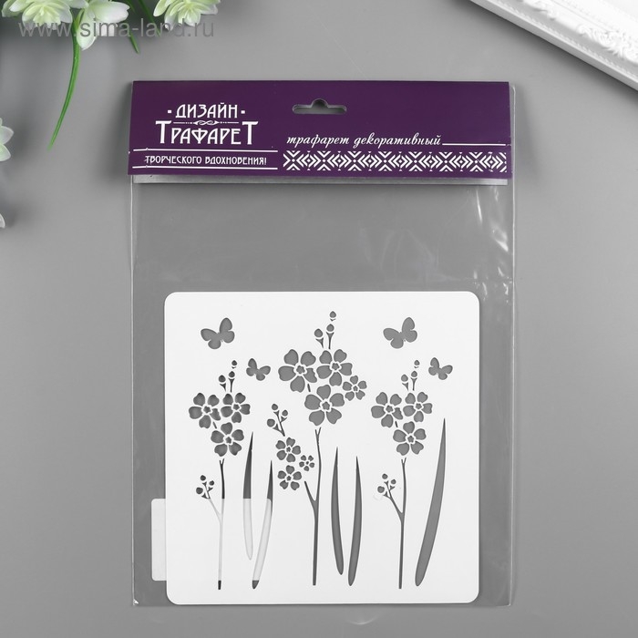 Трафарет пластик "Цветочки, бабочки" 15х15 см