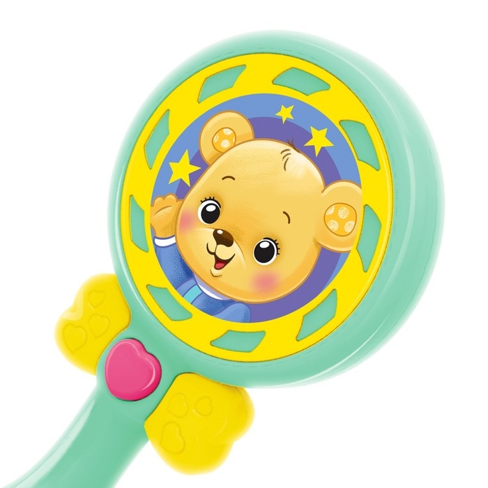 Кроха увидит, как мигает волшебный огонёк. Игрушка звонко гремит и привлекает внимание. Изделие удобно держать в маленькой ручке.