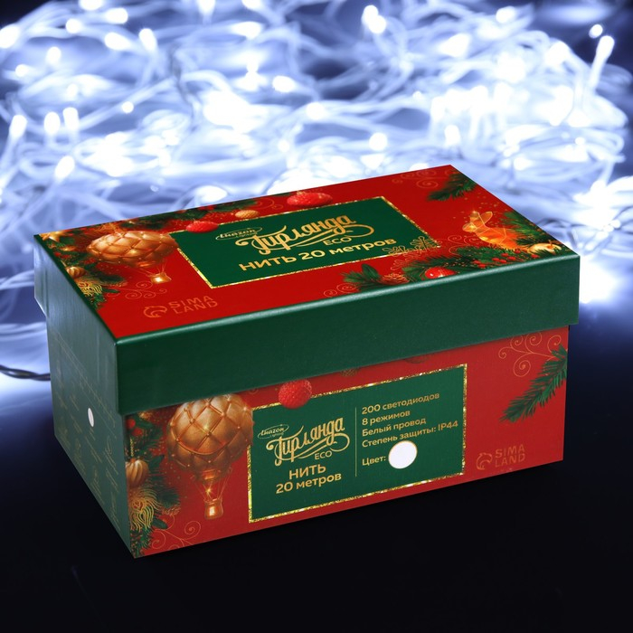 Гирлянда «Нить» 20 м, IP44, белая нить, 200 LED, свечение белое, 8 режимов, 220 В
