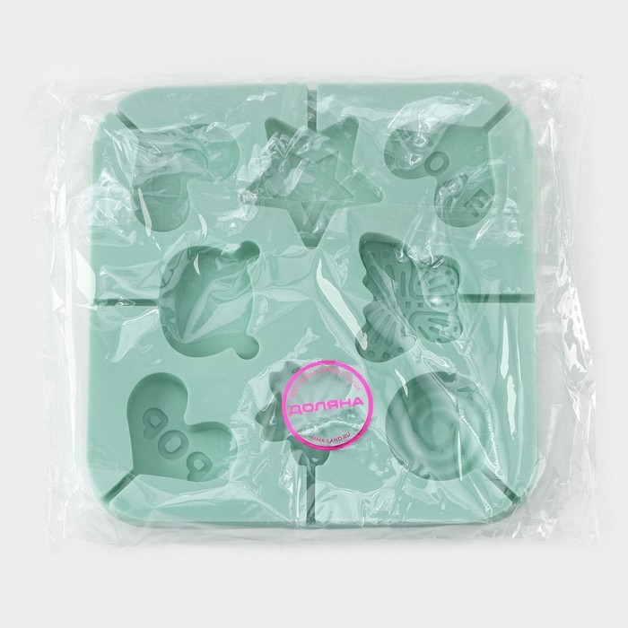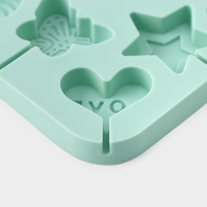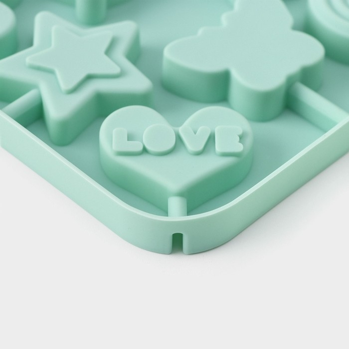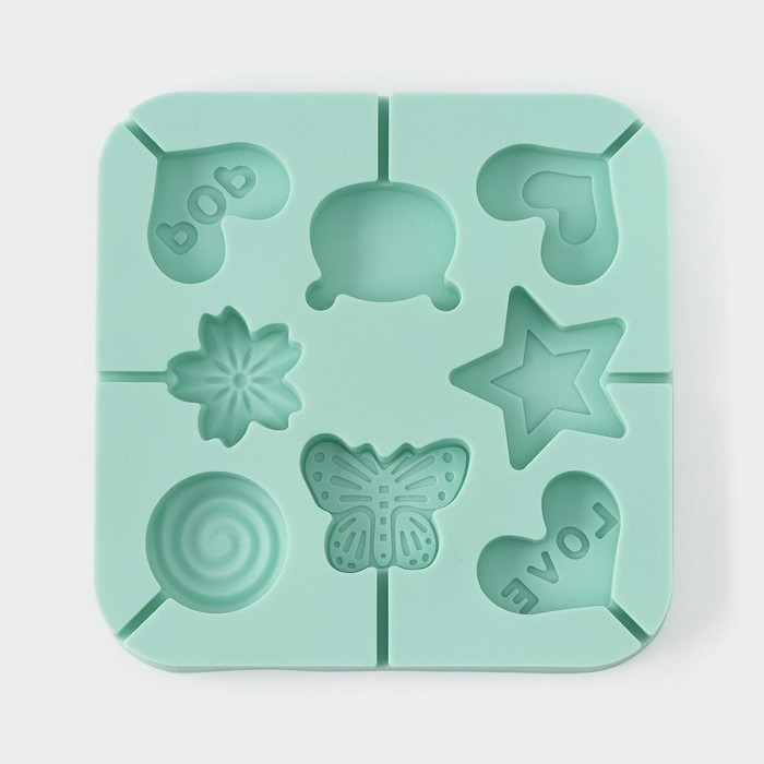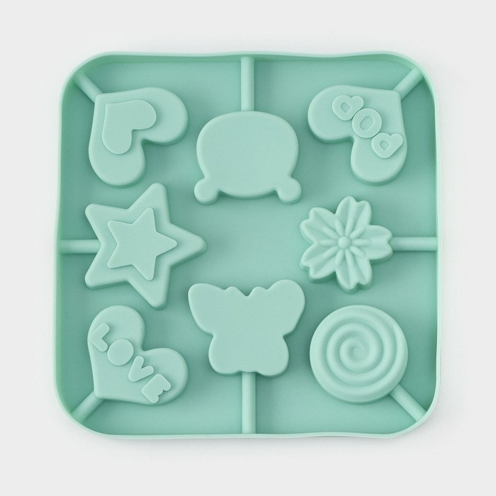 Форма для леденцов Доляна «Сладость», силикон, 15×15×1,5 см, 8 ячеек, с палочками, цвет бирюзовый