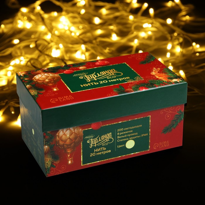 Гирлянда «Нить» 20 м, IP44, белая нить, 200 LED, свечение тёплое белое, 8 режимов, 220 В