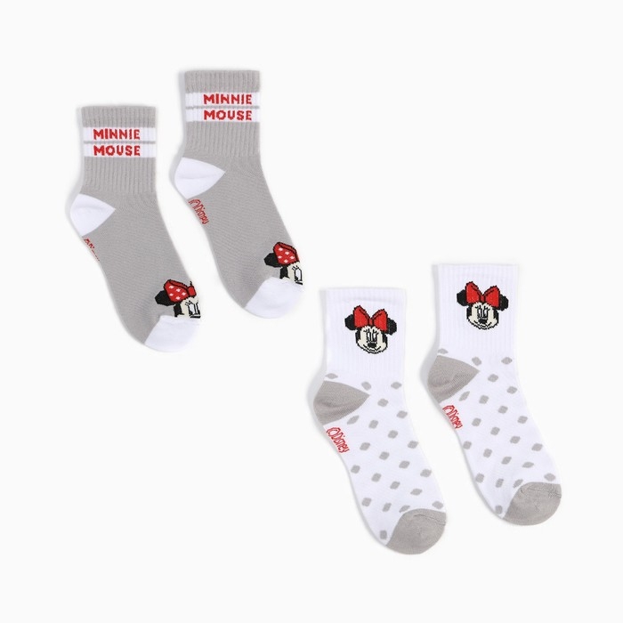 Набор носков "Minnie", Минни Маус, цвет серый/белый, 16-18 см