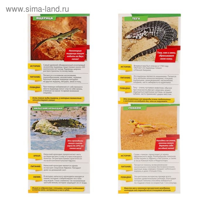 Каждая мини-энциклопедия рассказывает о представителях фауны, их отличительных признаках, истории происхождения, местах обитания. Ваш ребёнок познакомится со многими видами насекомых, лесных, полярных и морских животных, узнает об особенностях существования животных Африки, а также рептилий и амфибий.