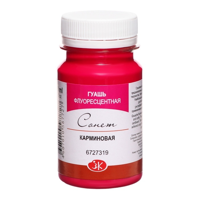 Гуашь художественная в банке 100 мл, Fluo, ЗХК "Сонет", карминовая флуор (6727319)