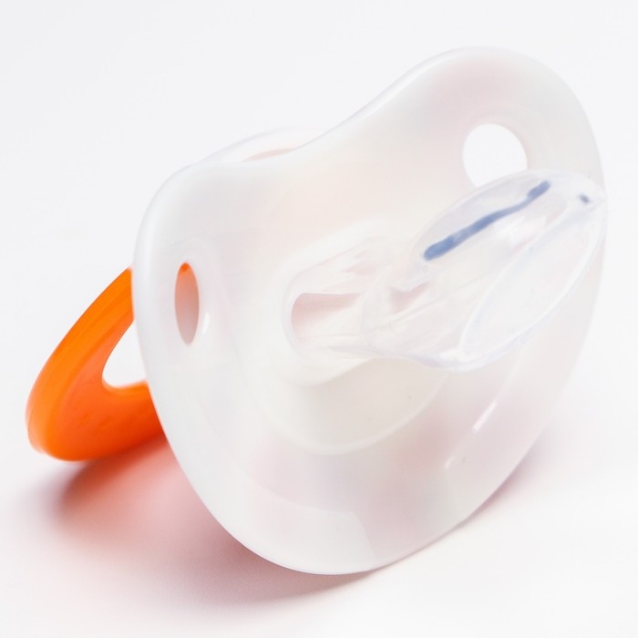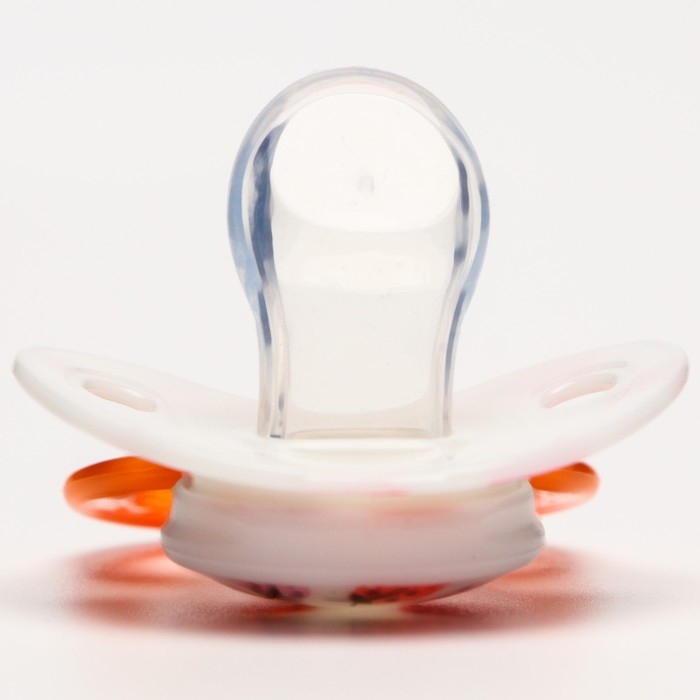 Соска пустышки силиконовая и имеет анатомическую форму диска, специальные вентиляционные отверстия на пустышке улучшают циркуляцию воздуха не раздражают кожу малыша и не оставляют следов и опрелостей. Создана для удовлетворения естественного сосательного рефлекса малышей. Пустышка анатомической формы имеет немного сплюснутый сосок, благодаря чему прилегает к языку.