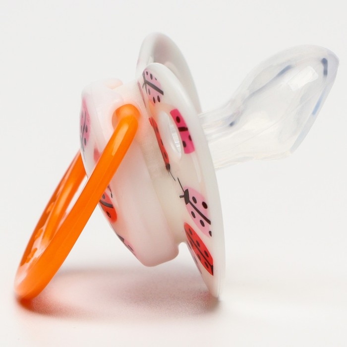 Соска - пустышка силиконовая ортодонтическая «Божья коровка», от 0 мес., с колпачком, цвет оранжевый
